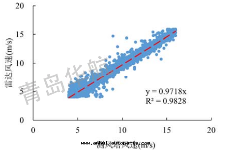 青(qīng)島(dǎo)華航針(zhēn)对(duì)海(hǎi)上(shàng)風(fēng)力觀测的(de)环(huán)境及(jí)特(tè)點(diǎn),持(chí)續研发和(hé)改進(jìn)海(hǎi)上(shàng)漂浮式激光雷(léi)达(dá)系(xì)統,設備自(zì)2019年(nián)12月(yuè)在浙江瑞安(ān)海(hǎi)域投放(fàng)以(yǐ)来(lái),經(jīng)曆了(le)數月(yuè)的(de)連(lián)續觀测,並(bìng)與(yǔ)附近(jìn)海(hǎi)域的(de)测風(fēng)塔進(jìn)行为(wèi)期(qī)半年(nián)的(de)同(tóng)期(qī)數據(jù)比对(duì)。與(yǔ)测風(fēng)塔同(tóng)期(qī)觀测时(shí)段(duàn)數據(jù)对(duì)比分(fēn)析結果(guǒ)顯示,青(qīng)島(dǎo)華航研制的(de)漂浮式激光雷(léi)达(dá)测量(liàng)數據(jù)具有(yǒu)出(chū)色(sè)的(de)完整性(xìng)和(hé)準确性(xìng),數據(jù)傳输完整率大(dà)于(yú)99%,各(gè)高度(dù)4-16m/s 風(fēng)速段(duàn)拟合相關(guān)系(xì)數均在 0.98 以(yǐ)上(shàng),斜率均在 0.97-1.03 範围內(nèi),風(fēng)向拟合斜率均在0.99-1.01之(zhī)間(jiān),相關(guān)系(xì)數均在 0.99 以(yǐ)上(shàng),平均偏差在 2°以(yǐ)內(nèi),超过(guò)國(guó)际規範要(yào)求,表(biǎo)明(míng)了(le)華航漂浮式激光雷(léi)达(dá)系(xì)統在多(duō)雨(yǔ)、霧(wù)的(de)天气(qì)下(xià)及(jí)高湿盐(yán)度(dù)的(de)海(hǎi)洋(yáng)环(huán)境中(zhōng)運行具有(yǒu)很高的(de)可(kě)靠性(xìng)、穩定(dìng)性(xìng)以(yǐ)及(jí)數據(jù)準确性(xìng)。
