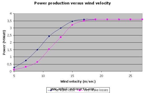 美(měi)國(guó)加州風(fēng)场(chǎng)的(de)運行經(jīng)验(yàn)表(biǎo)明(míng),尾(wěi)流造成(chéng)的(de)損失典型值是(shì)10%。根(gēn)据地形地貌、機(jī)組間(jiān)的(de)距離和(hé)風(fēng)的(de)湍流強(qiáng)度(dù)不(bù)同(tóng),尾(wěi)流損失最(zuì)小是(shì)2%,最(zuì)大(dà)可达(dá)30%。
